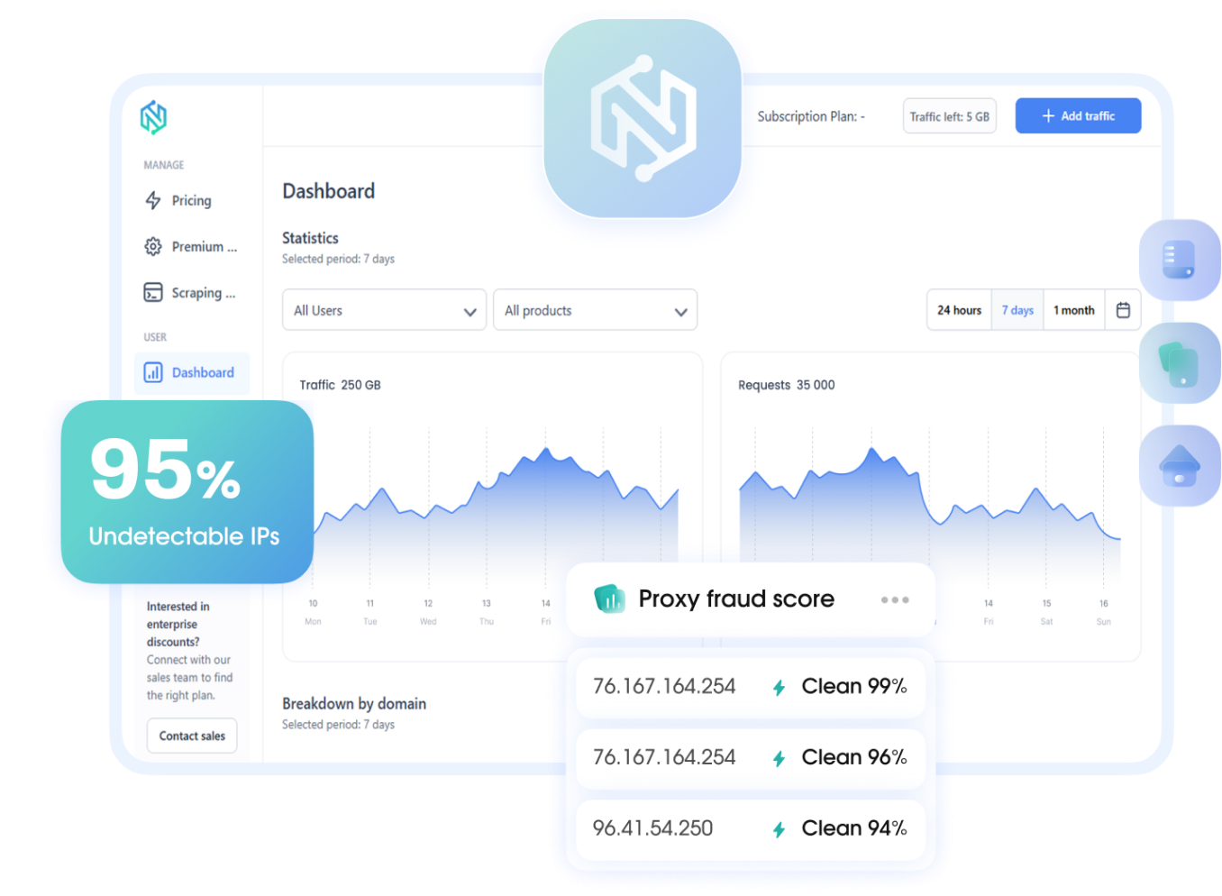 NodeMaven uses a cutting-edge IP Quality algorithm that combines multiple databases into a single powerful system. This allows us to accurately predict which IP addresses may underperform in real-world scenarios. By analyzing patterns across multiple sources, our technology ensures that only high-trust, reliable proxies are delivered to users. In addition, we proactively check for common leaks, including DNS and header leaks, to provide maximum privacy and security.