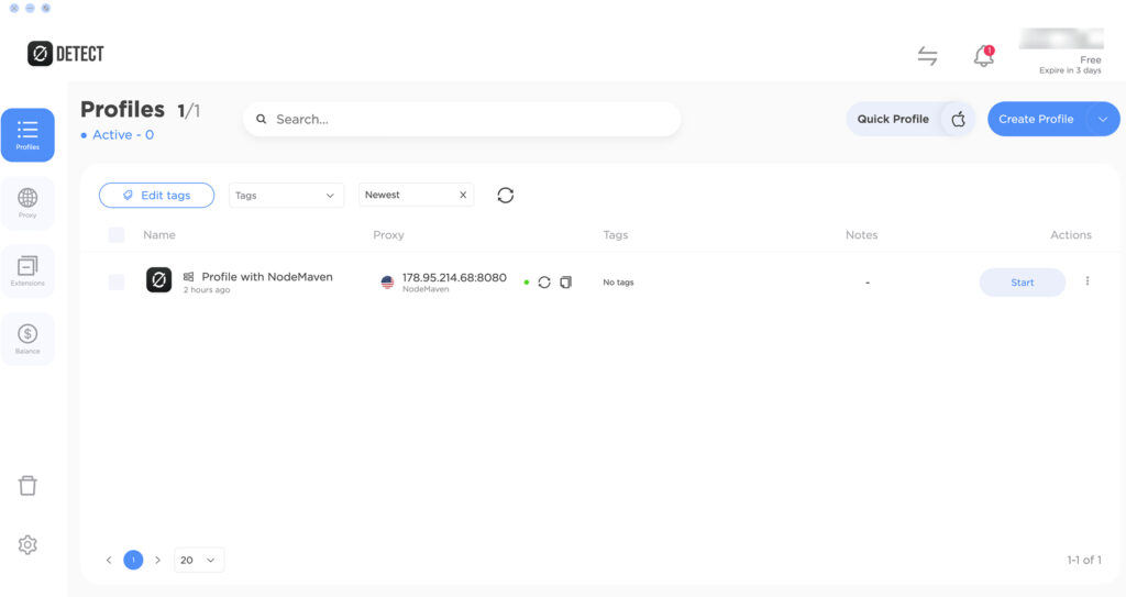 Once connected, 0DETECT handles browser isolation, and NodeMaven ensures that every connection runs on a clean, stable IP. Together, they provide a secure foundation for professional multi-account workflows.