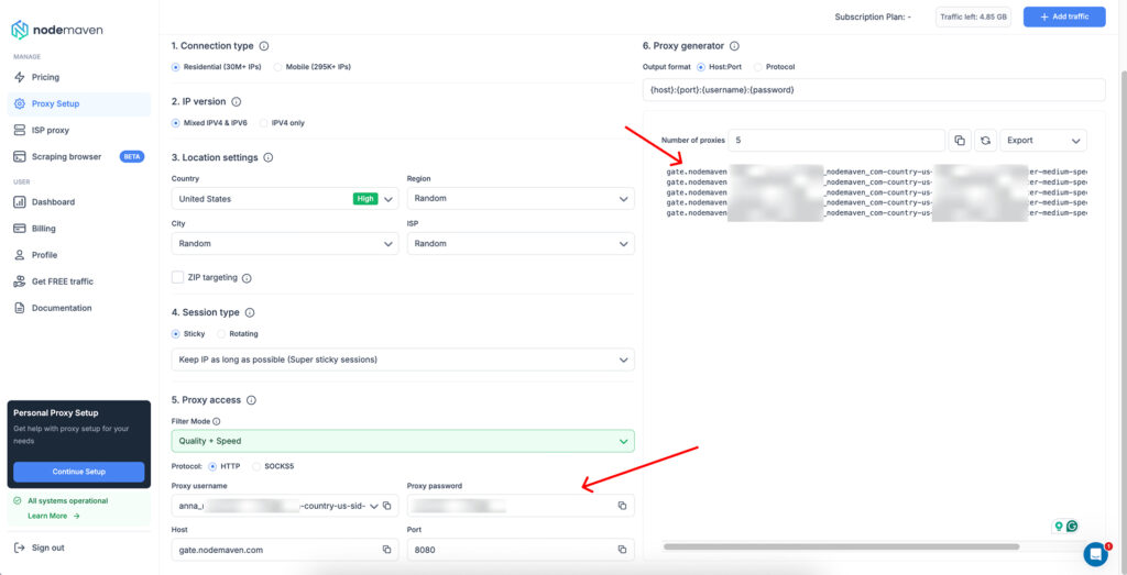 1. Get Your Proxy Credentials: Log in to your NodeMaven dashboard and copy your proxy details (host, port, username, password).