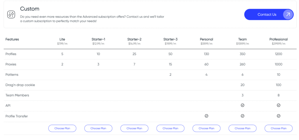 Paid plans start from an affordable monthly rate and vary by the number of browser profiles and team seats included.