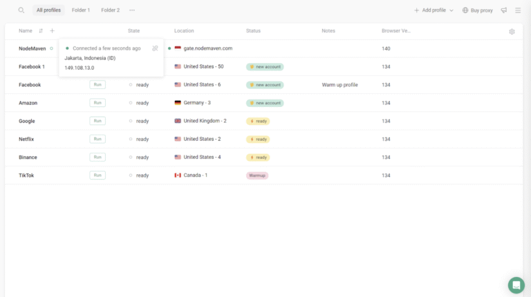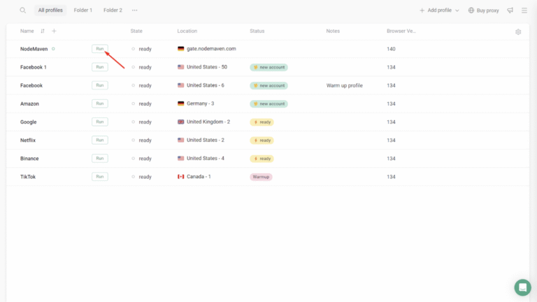 6. Click “Run” to start the profile — your isolated browsing session is ready.