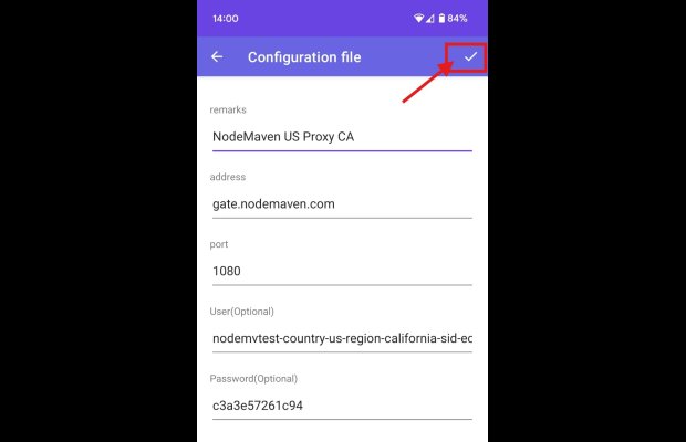 You will now see the configuration screen. Fill in the following fields with your NodeMaven proxy details: